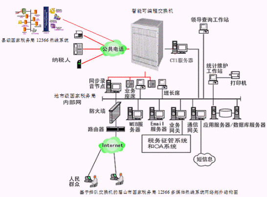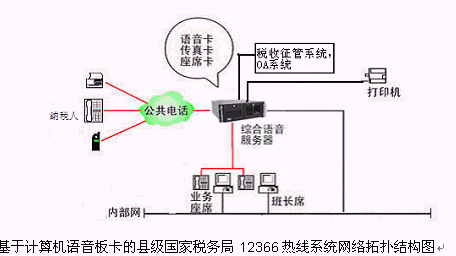 對于縣級國家稅務(wù)局12366多媒體納稅服務(wù)熱線系統(tǒng),則建議使用基于計(jì)算機(jī)語音板卡的方式,可以減少投資,同時(shí)具有良好的系統(tǒng)性能;對于地市級-縣級國家稅務(wù)局12366多媒體納稅服務(wù)熱線系統(tǒng),可選用排隊(duì)交換機(jī)作為語音接入設(shè)備,以保障系統(tǒng)的高可靠性和穩(wěn)定性;大大提高了系統(tǒng)的適應(yīng)面。