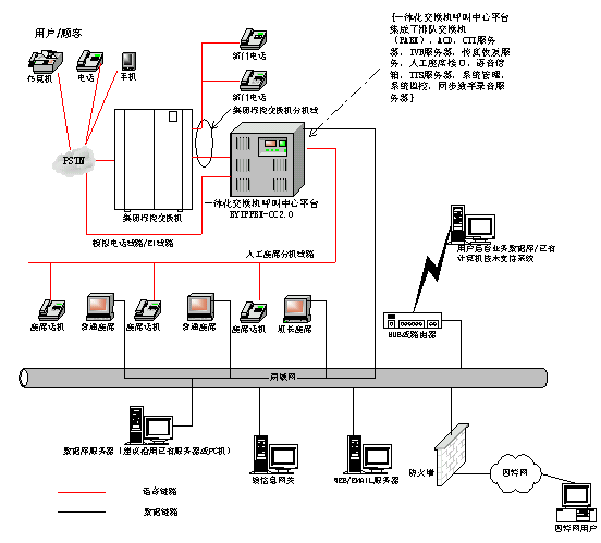 基于博宇科技一體化交換機(jī)呼叫中心平臺(tái)產(chǎn)品BYIPPBX-CC2.0的長(zhǎng)安鈴木公司客戶服務(wù)中心系統(tǒng)網(wǎng)絡(luò)結(jié)構(gòu)