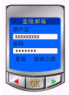 進(jìn)入移動(dòng)郵件系統(tǒng)后,可分別選擇"登陸郵箱、郵箱注冊(cè)、找回密碼、返回上級(jí)"來(lái)進(jìn)行下一步操作。