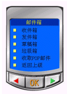 下設(shè)收件箱、發(fā)件箱、草稿箱、垃圾箱、收取POP郵件五項(xiàng)菜單。