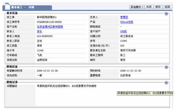 記錄需要上門服務的客戶問題、希望解決時間等問題。并實現(xiàn)企業(yè)的服務派工流程。