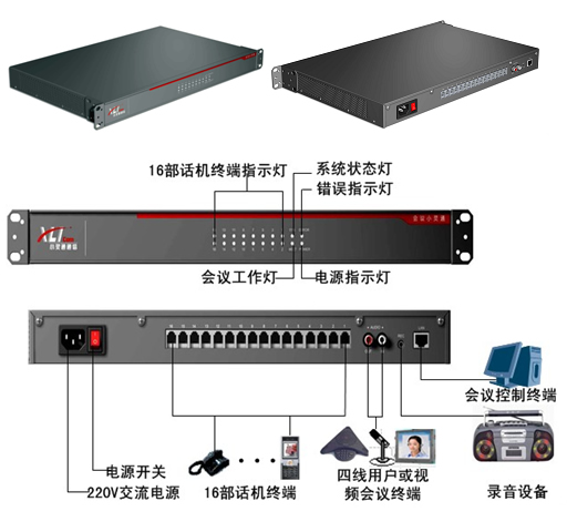 系統(tǒng)提供一個(gè)網(wǎng)口,可方便連接計(jì)算機(jī);針對(duì)各個(gè)行業(yè)用戶(hù)特殊需求,系統(tǒng)提供一個(gè)四線模塊,可連接四線終端、視頻設(shè)備、其他會(huì)場(chǎng)設(shè)備或用于雙系統(tǒng)級(jí)聯(lián);通過(guò)聯(lián)網(wǎng)的計(jì)算機(jī),系統(tǒng)即可獨(dú)立使用,也可與計(jì)算機(jī)協(xié)同使用;系統(tǒng)還提供錄音機(jī)接口,可通過(guò)錄音機(jī)或計(jì)算機(jī)進(jìn)行會(huì)場(chǎng)錄音。