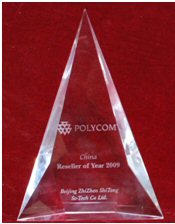 2010年2月,寶利通全球代理商大會(huì)在美國(guó)圣地亞哥舉辦,直真視通榮獲“Polycom 2009 亞太區(qū)最大集成商”獎(jiǎng)牌。