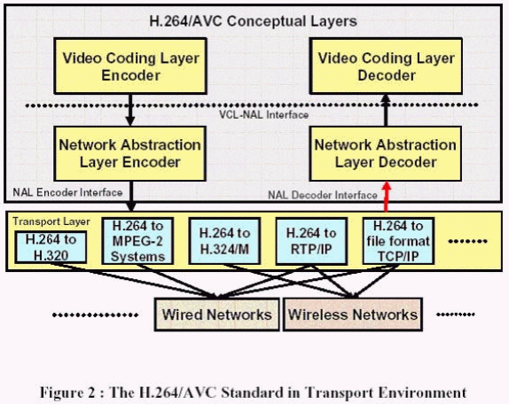 根據(jù)圖2,H.264/ AVC在不同的概念層上區(qū)分開來,視頻編碼層(VCL)和網(wǎng)絡(luò)抽象層(NAL)。VCL和NAL都是H.264/ AVC標(biāo)準(zhǔn)的一部份。VCL對視頻編碼信號進(jìn)行了有效的說明。H.264/AVC的NAL定義了視頻編碼和外面世界之間的接口。它通過NAL單元來支持大部分基于包的網(wǎng)絡(luò)。在NAL解碼接口,它假設(shè)NAL單元已經(jīng)通過解碼命令被發(fā)送,數(shù)據(jù)包要么被正確接受,要么丟失,如果有效載荷里包括了錯誤的數(shù)據(jù)流,NAL單元的頭就會產(chǎn)生一個錯誤的標(biāo)記。由于標(biāo)記可以用于不同的目的,因此它并不作為標(biāo)準(zhǔn)的一部分。然而,它提供一個在整個網(wǎng)絡(luò)里提供錯誤指示信號的方法。此外,接口規(guī)范要求標(biāo)準(zhǔn)化主體有責(zé)任對不同傳送協(xié)議進(jìn)行描述。NAL單元在不同傳輸系統(tǒng)的精確傳輸和加密,例如H.320,MPEG-2系統(tǒng)和RTP/IP,也同樣在h.264/AVC標(biāo)準(zhǔn)化的范疇以外。在標(biāo)準(zhǔn)里面正式定義了NAL解碼接口,然而,VCL和NAL之間的接口只是概念上的定義,主要是幫助描述和分開VCL和NAL的任務(wù)。