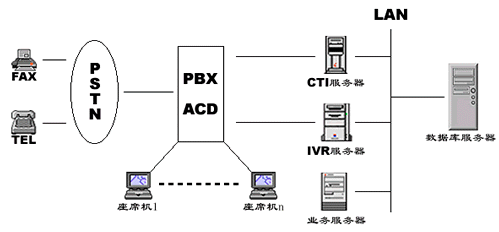 1.交換機+CTI服務器+IVR+傳真服務器….