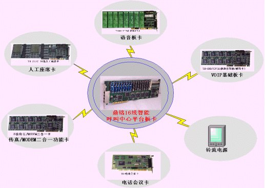 鼎銘公司將在本月隆重推出新一代的板卡級(jí)呼叫中心硬件平臺(tái)------DM016A/PCI多功能卡。DM016A/PCI系列語音卡是我公司十年來CTI技術(shù)的結(jié)晶,她涵括了目前市場中模擬語音處理卡、人工座席卡、傳真/MODEM卡、電話會(huì)議卡、高倍語音壓縮/解壓(VOIP)卡、高阻抗監(jiān)控錄音卡等功能和一體化的優(yōu)點(diǎn),并自帶鈴流電源,不需另外接接線盒和鈴流電源。在該卡上能開發(fā)出PBX、ACD、IVR、FAX/MODEM服務(wù)器、Agnet(座席)子、預(yù)約呼出、錄音監(jiān)控、電話會(huì)議、VOIP(需第三方的H.323協(xié)議)網(wǎng)關(guān)等多媒體呼叫中心所需的所有功能模塊、子系統(tǒng)。