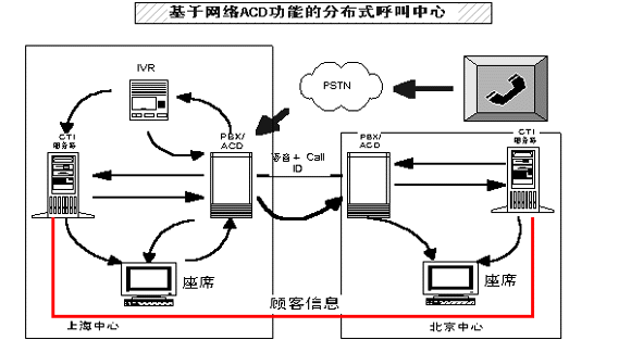 采用智能呼叫分配(ACD),由多種條件決定路由的選擇,如業(yè)務(wù)員的忙閑統(tǒng)計(jì)、業(yè)務(wù)員的服務(wù)能力、每天不同時(shí)段呼叫統(tǒng)計(jì)、主叫用戶的所在區(qū)域以及主叫用戶的號(hào)碼等。企業(yè)呼叫中心甚至可突破語言界限,跨越不同電話系統(tǒng)網(wǎng)絡(luò)分布到全球轉(zhuǎn)發(fā)話音及數(shù)據(jù)。