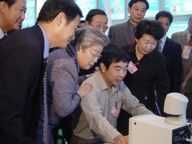 C&E 2.2、嵌入式產(chǎn)品InterSound 3.0和Talking Book電子書等。語音合成給觀眾帶來了全新的感受,流暢自然的語音合成、抑揚(yáng)頓挫的唐詩誦讀吸引了無數(shù)參觀者駐足、觀賞。國務(wù)院副總理吳儀同志參觀安徽展區(qū)時(shí),親臨訊飛展區(qū),對(duì)訊飛的語音技術(shù)表現(xiàn)出強(qiáng)烈興趣?拼笥嶏w陳燕總監(jiān)向吳儀副總理簡要匯報(bào)了中文語音產(chǎn)業(yè)及科大訊飛公司的發(fā)展情況,并親自演示了訊飛電信級(jí)和芯片級(jí)語音產(chǎn)品。吳儀臉上不時(shí)露出微笑,鼓勵(lì)訊飛再接再厲,把民族語音產(chǎn)業(yè)做大做強(qiáng)。