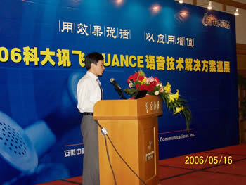 5月16日,在眾多客戶與合作伙伴的熱烈關注和積極參與下,“2006科大訊飛·NUANCE語音技術解決方案巡展”在首站北京正式拉開帷幕。