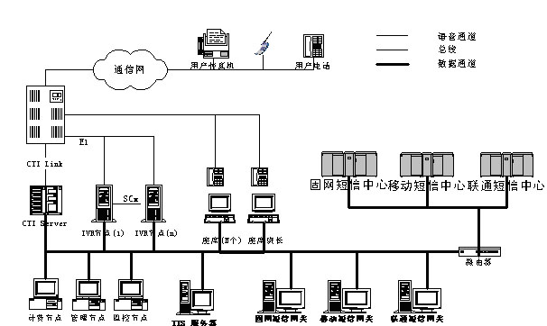 對于不同類型消息呼入、呼出的外圍系統(tǒng)設計遵循模塊化原則;系統(tǒng)內(nèi)部消息流滿足格式統(tǒng)一、可操作性統(tǒng)一、開發(fā)接口統(tǒng)一等特點。在軟、硬件選型上,充分考慮系統(tǒng)的穩(wěn)定性、開放性、經(jīng)濟性,根據(jù)不同的系統(tǒng)規(guī)模進行詳細論證。