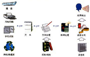 -----按照人類言語功能的不同層次,語言合成也可分成三個層次,它們是:(1)從文字到語音的合成(Text-To-Speech);(2)從概念到語音的合成(Concept-To-Speech);(3)從意向到語音的合成(Intention-To-Speech)。這三個層次反映了人類大腦中形成說話內(nèi)容的不同過程,涉及人類大腦的高級神經(jīng)活動。不難想象,即使是按規(guī)則的文字到語音合成(文語合成)也已經(jīng)是相當(dāng)困難的任務(wù)。為了合成出高質(zhì)量的語言,除了依賴于各種規(guī)則,包括語義學(xué)規(guī)則、詞匯規(guī)則、語音學(xué)規(guī)則外,還必須對文字的內(nèi)容有很好的理解,這將涉及自然語言理解的問題。從這一點講,文語轉(zhuǎn)換系統(tǒng)實際上也可看作一個人工智能系統(tǒng)。圖1顯示了一個完整的文語轉(zhuǎn)換系統(tǒng)示意圖。文語轉(zhuǎn)換過程是先將文字序列轉(zhuǎn)換成音韻序列,再由語音合成器生成語音波形。其中第一步涉及語言學(xué)處理,例如分詞、字音轉(zhuǎn)換等,以及一整套有效的韻律控制規(guī)則;第二步需要先進的語音合成技術(shù),能按要求實時合成出高質(zhì)量的語音流。因此一般說來,文語合成系統(tǒng)都需要一套復(fù)雜的文字序列到音素序列的轉(zhuǎn)換程序,也就是說,文語轉(zhuǎn)換系統(tǒng)不僅要應(yīng)用數(shù)字信號處理技術(shù),而且必須有大量的語言學(xué)知識的支持。當(dāng)然其中語音合成終究還是最基本的部分,它相當(dāng)于“人工嘴巴”,任何語言合成系統(tǒng)包括文語轉(zhuǎn)換系統(tǒng),都離不開語音合成器。