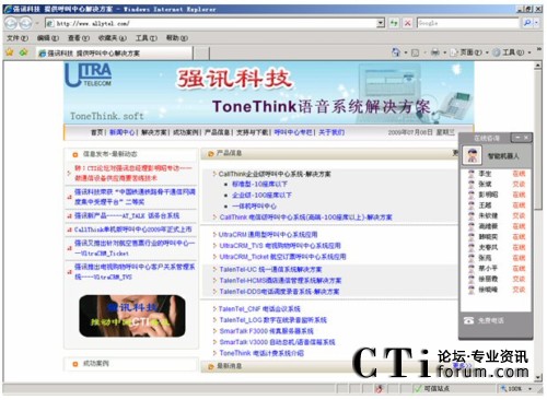 訪客可以通過(guò)點(diǎn)擊網(wǎng)站的 “客服”鏈接自動(dòng)選擇交談對(duì)象或點(diǎn)擊“客服人員”進(jìn)行交談。