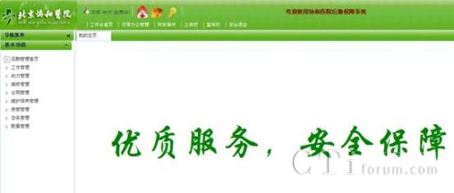 登錄后的后勤保障管理系統(tǒng)主頁(yè)面,左側(cè)為系統(tǒng)功能樹形結(jié)構(gòu)圖。
