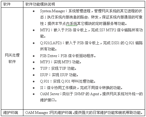 整個PSG信令轉換網(wǎng)關的軟件由系統(tǒng)支持軟件和網(wǎng)關處理軟件組成,具體見下表: