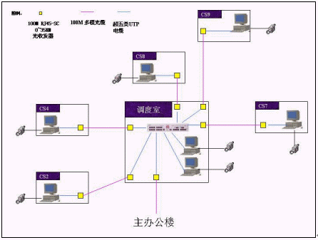 下例示圖是本產(chǎn)品的應(yīng)用實(shí)例。示圖中CS**和調(diào)度室均為現(xiàn)場操作人員工作的控制室。通過調(diào)度室同廠辦公樓實(shí)現(xiàn)網(wǎng)絡(luò)之間的互聯(lián)。每一臺(tái)信號(hào)處理服務(wù)器帶4到8個(gè)攝像頭,主辦公樓內(nèi)在現(xiàn)有的計(jì)算機(jī)上安裝了本公司的遠(yuǎn)程監(jiān)視軟件,實(shí)現(xiàn)了管理人員及廠領(lǐng)導(dǎo)的遠(yuǎn)程監(jiān)視的功能。
