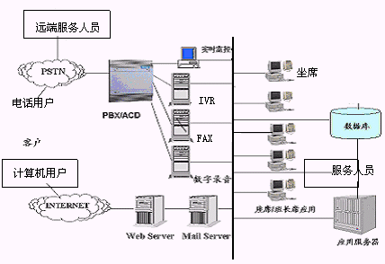 呼叫中心是伴隨著激烈的市場(chǎng)競(jìng)爭(zhēng)和企業(yè)成功的經(jīng)營(yíng)理念而生,既低端的價(jià)格競(jìng)爭(zhēng)向高端的服務(wù)競(jìng)爭(zhēng)以及對(duì)企業(yè)核心客戶的保持。它融合了傳統(tǒng)的公共電話網(wǎng)PSTN,計(jì)算機(jī)網(wǎng)絡(luò),以及數(shù)據(jù)庫(kù)存儲(chǔ)技術(shù)和自動(dòng)語(yǔ)音應(yīng)答IVR等技術(shù),將語(yǔ)音與數(shù)據(jù)資源有效的結(jié)合,為企業(yè)在技術(shù)上保證核心客戶的高忠誠(chéng)度打下了堅(jiān)實(shí)的基礎(chǔ)。