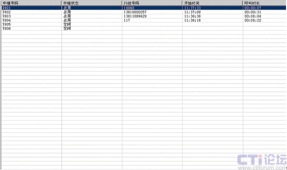 如圖3所示,管理員能得到中繼來電的明細(xì)信息,來電號碼,來電時(shí)長,都有詳細(xì)數(shù)據(jù)。