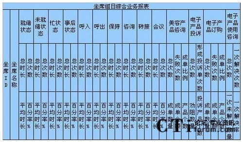 c)如果想對這個組的坐席進行整體的坐席狀態(tài)進行考核,以便確定工作負荷、績效考核,形成每天、每月、每季度、每年、按組、按技能,平均、總計、總合、最大、最小數(shù)據(jù)比較的表格、圖表,對不起要么你放棄這個想法,要么你重新開發(fā)軟件進行計算;