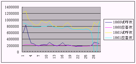 通過(guò)對(duì)各曲線(xiàn)均值與峰值的對(duì)比,也可以清晰的看出,新1861系統(tǒng)的上線(xiàn)不僅有效的提高了1861熱線(xiàn)的接通率,增大了系統(tǒng)容量,而且對(duì)1860系統(tǒng)也進(jìn)行了大大的緩解。