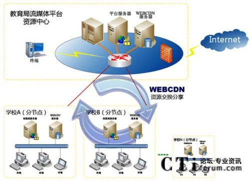 圖:VIEWGOOD WEBCDN流媒體多節(jié)點(diǎn)綜合管理應(yīng)用平臺(tái)教育解決方案應(yīng)用拓?fù)鋱D
