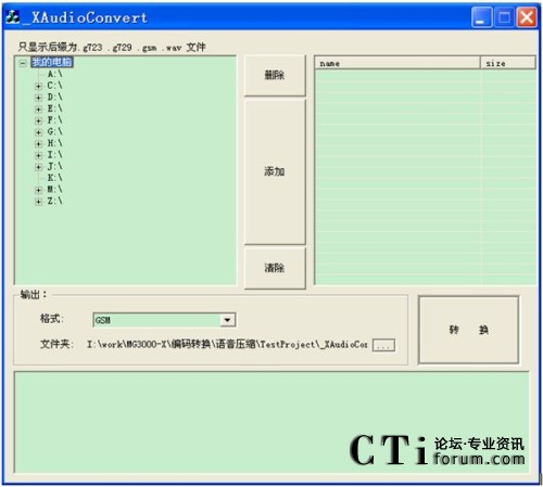 通過上傳方式提供的語音文件,需要通過軟件AudioConverter把wav格式轉(zhuǎn)換成MG3000-X所使用的文件格式。如下圖所示: