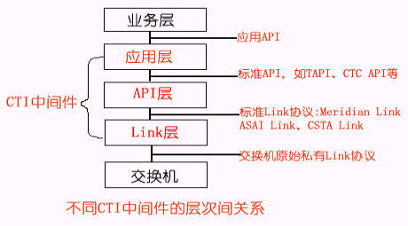 根據(jù)CTI的功能定位,我們可以把CTI產(chǎn)品劃分為不同的層次,一般地可分為三種類(lèi)型:Link層產(chǎn)品、API層產(chǎn)品、應(yīng)用層產(chǎn)品,其分層結(jié)構(gòu)示意圖如下所示: