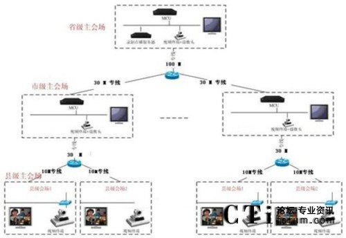 整個電視會議系統(tǒng)省中心放置一套Elite 5230 MCU核心MCU設(shè)備;ECS網(wǎng)閘熱備系統(tǒng)集中部署在省中心機(jī)房,提供對全網(wǎng)的所有MCU以及終端設(shè)備的管理和認(rèn)證;在省中心機(jī)房部署1套桌面通信會議系統(tǒng),滿足全省PC桌面會議需求以及出差用戶的會議需求;在省中心機(jī)房部署一套iViewSuite會議管理通信系統(tǒng),滿足全省所有會議設(shè)備的管理、維護(hù)、會議調(diào)度、會議預(yù)約、會議以及事件日志記錄等。