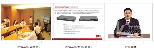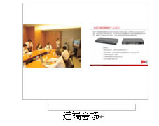 對于很多分會場通常只有1臺顯示設(shè)備的情況,H3C公司的視訊終端提供在1臺顯示設(shè)備上同時顯示"遠(yuǎn)端的會場圖像+遠(yuǎn)端膠片+本地會場圖像",顯示模式可通過終端遙控器靈活選擇:遠(yuǎn)端圖像、遠(yuǎn)端膠片、遠(yuǎn)端圖像+遠(yuǎn)端膠片、,實際顯示效果如下圖所示: