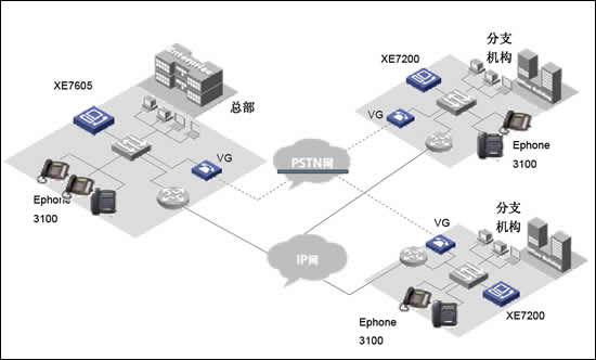 華為三康的XE7000IP語音解決方案是為企業(yè)提供融合的通信解決方案,在同一網(wǎng)絡(luò)上融合語音、數(shù)據(jù)和視頻信息,以滿足其日益增長的企業(yè)通信的要求從而解決了現(xiàn)代企業(yè)面對的傳統(tǒng)PBX語音服務(wù)和IP網(wǎng)絡(luò)數(shù)據(jù)服務(wù)分離問題。華為三康的XE7000IP語音解決方案構(gòu)建在企業(yè)現(xiàn)有IP數(shù)據(jù)網(wǎng)絡(luò)之上,以集中式管理方式提供企業(yè)全網(wǎng)范圍內(nèi)的呼叫控制以及管理,業(yè)務(wù)控制和信令分離使得用戶在管理上更加簡單透明,極大的節(jié)省了日常維護費用和降低了維護難度。并使得客戶可以在任意地方實現(xiàn)IP語音數(shù)據(jù)接入,使得企業(yè)分布式辦公的不再因為物理空間隔離而無法實現(xiàn)。