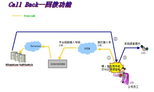 隨著VOIP技術(shù)正的不斷完善,吸引了很多用戶進(jìn)入到VOIP行列中。但是使用VOIP的一個(gè)弊端就在于用戶必須要有網(wǎng)絡(luò),而且要在PC機(jī)上安裝軟件或購(gòu)買網(wǎng)關(guān)設(shè)備。這樣使用起來(lái)就有了很大的局限性。彩虹電信的回?fù)芄δ芫涂梢越鉀Q這個(gè)問(wèn)題,它的客戶群就可以包括普通PSTN的座機(jī)用戶和手機(jī)用戶。