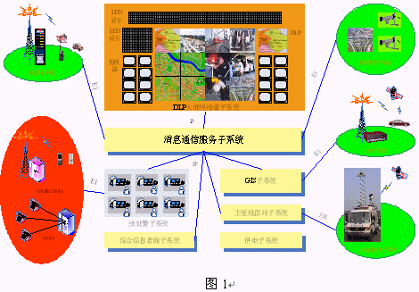 消息隊列服務(wù)器采用國際領(lǐng)先的計算機(jī)支持的協(xié)同技術(shù)進(jìn)行設(shè)計開發(fā),實(shí)現(xiàn)三臺合一指揮調(diào)度系統(tǒng)眾多子系統(tǒng)間的無縫集成,包括數(shù)據(jù)流(包括信令)的集成、工作流的集成、應(yīng)用的集成、信息的集成、語音鏈路的集成。它是好易通科技三臺合一指揮調(diào)度系統(tǒng)所有子系統(tǒng)之間進(jìn)行TCP/IP消息傳遞的中轉(zhuǎn)站,負(fù)責(zé)消息的分發(fā)和系統(tǒng)協(xié)同功能。它提供了接處警座席子系統(tǒng)、GIS警用地理信息子系統(tǒng)、集群通信系統(tǒng)、GPS衛(wèi)星定位子系統(tǒng)、視頻監(jiān)控子系統(tǒng)、大屏幕顯示子系統(tǒng)、應(yīng)急通信車子系統(tǒng)、綜合信息查詢子系統(tǒng)之間相互數(shù)據(jù)通信的接口,如圖1所示。