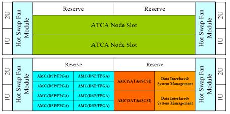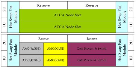 從上面的例子已經(jīng)可以看出,2U ATCA雖然很小,但是利用其靈活的網(wǎng)絡(luò)拓撲結(jié)構(gòu),配合不同的AMC模塊,可以實現(xiàn)復(fù)雜的、過去要用龐大的系統(tǒng)平臺才能實現(xiàn)的功能。