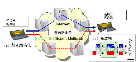 由于是利用多路徑路由發(fā)送分割的數(shù)據(jù),1條路徑被竊聽只會有部分分割數(shù)據(jù)被竊聽。不過,如果發(fā)送分割數(shù)據(jù)的全部路徑都被竊聽,分割數(shù)據(jù)也可能全部流出。為此,此次的秘密通信系統(tǒng)設(shè)想采用基于覆蓋路由器的網(wǎng)絡(luò)(覆蓋網(wǎng)絡(luò)),將全部數(shù)據(jù)被竊聽的可能性減小到了接近0。這是因為覆蓋路由器的通信路徑能夠進(jìn)行實時切換。此次的保密通話系統(tǒng)將在覆蓋網(wǎng)絡(luò)達(dá)到實用化水平時投產(chǎn)實用。計劃在3~4年內(nèi)實現(xiàn)。