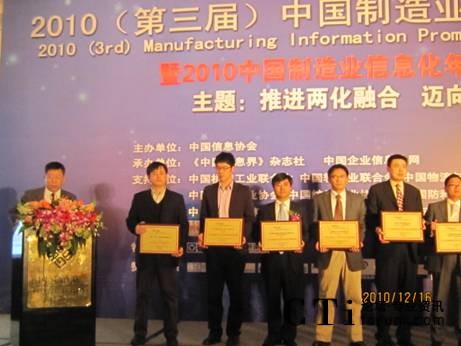 CTI論壇(ctiforum)12月27日消息(記者 潘婷婷):12月16日,由中國(guó)信息協(xié)會(huì)聯(lián)合我國(guó)十幾家制造業(yè)行業(yè)協(xié)會(huì)共同舉辦的“2010(第三屆)中國(guó)制造業(yè)信息化推進(jìn)大會(huì)暨中國(guó)制造業(yè)信息化年度頒獎(jiǎng)盛典”在北京成功舉行。中國(guó)信息協(xié)會(huì)會(huì)長(zhǎng)盧時(shí)徹、中國(guó)機(jī)械工業(yè)聯(lián)合會(huì)特別顧問(wèn)、國(guó)家信息化專(zhuān)家咨詢委員會(huì)委員朱森第、工業(yè)和信息化部信息化推進(jìn)司安筱鵬等領(lǐng)導(dǎo)出席此次活動(dòng)并發(fā)表演講。會(huì)上,八百客獲得“2010年度CRM領(lǐng)軍企業(yè)”大獎(jiǎng),至此,八百客已經(jīng)斬獲“中國(guó)云計(jì)算領(lǐng)軍企業(yè)”和“CRM領(lǐng)軍企業(yè)”雙料大獎(jiǎng),為2010年畫(huà)上了圓滿的句號(hào)。