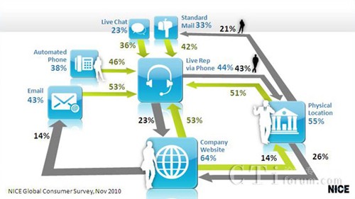 NICE最近宣布了其客戶(hù)渠道偏好調(diào)查的主要發(fā)現(xiàn),調(diào)查對(duì)象為美國(guó)、英國(guó)和澳大利亞境內(nèi)年齡段在18歲至65歲的2000多人。該調(diào)查分析了他們與金融服務(wù)、電信、零售、旅游、保險(xiǎn)及公用事業(yè)等行業(yè)之間的首選聯(lián)絡(luò)渠道。調(diào)查顯示客戶(hù)往往依靠網(wǎng)絡(luò)、互動(dòng)式語(yǔ)音應(yīng)答渠道(IVR)、聊天工具或者電子郵件作為與企業(yè)或服務(wù)供應(yīng)商的首要接觸點(diǎn)。然而,如果他們無(wú)法在首次聯(lián)絡(luò)過(guò)程中解決問(wèn)題,則客戶(hù)聯(lián)絡(luò)中心便成為解決問(wèn)題的二級(jí)渠道。