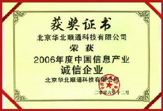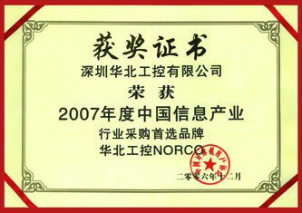 2007年1月16日,由中國計算機用戶協會(簡稱CCUA)主辦的“中國計算機用戶協會2006年度企業(yè)及產品推介頒獎大會” 在北京世紀金源大飯店隆重召開,通過對中國境內從事IT產品生產、銷售、集成和服務企業(yè)的經營規(guī)模、服務能力、產品使用效果、企業(yè)誠信和持續(xù)發(fā)展能力等多項指標進行綜合評定,揭曉了中國信息產業(yè)2006年度優(yōu)秀企業(yè)評選與產品推介活動結果。華北工控憑借其在業(yè)內深入人心的影響,再次獲得“2006年度中國信息產業(yè)誠信企業(yè)獎”和“2007年度中國信息產業(yè)行業(yè)采購首選品牌”。