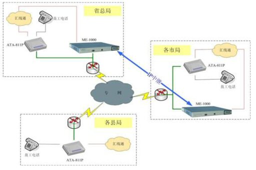 根據(jù)政府機(jī)構(gòu)的特點(diǎn),搭建VoIP系統(tǒng)應(yīng)本著以下原則:  解決方案拓?fù)鋱D