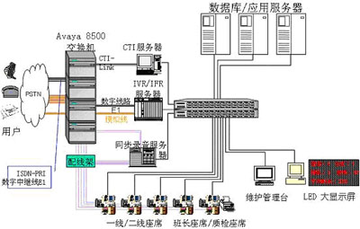 交換機/排隊機:選用AVAYA的S8500交換機作為前端排隊設備。