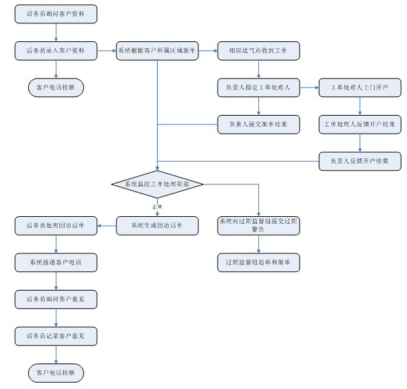 投訴受理:通過人工、自動語音、短信、傳真、Email、web等方式受理各種用戶投訴,并可以工單的方式流轉(zhuǎn)到相關(guān)的部門進(jìn)行處理,并記錄處理過程和跟蹤處理結(jié)果。能夠處理從上級部門、消協(xié)等方面轉(zhuǎn)過來的用戶投訴。