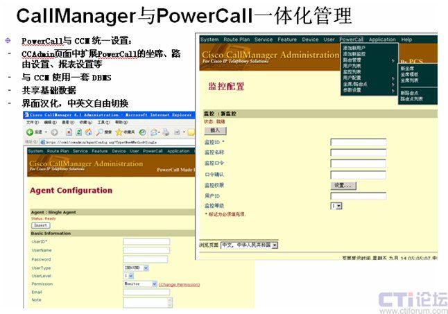 系統(tǒng)采用CISCO CallManager IP-PBX作為語(yǔ)音平臺(tái),PCS提供全套軟件,包括:CTI、排隊(duì)、IP-IVR、錄音和CRM,對(duì)MicroCall外包呼叫中心的各項(xiàng)需求都給出了滿(mǎn)意的解決方案。