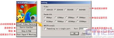 Video Service按鈕,對方就可以在聊天窗口中收到邀請信息,點擊“接受”按鈕后雙方自動啟動并進(jìn)入Clicktoparty軟件的主界面。您還可以以同樣的操作步驟,陸續(xù)邀請其他好友或聯(lián)系人加入,之后就可以享受Clicktoparty帶給您的強大功能和美好體驗,包括專業(yè)級的音視頻實時溝通、多人文字交流及私聊、桌面共享及遠(yuǎn)程協(xié)助、高速的文件傳輸、各種文檔的在線演示和討論等。