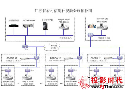 本次設計方案中,上海索高通過對江蘇農信社的全省分布和各地實際需求,提供72套Sony PCS-G50視頻會議終端,IP網絡支持最大4Mbps的視頻傳輸速率,為用戶提供4CIF的高質量視頻效果,配合H.264的強大功能一起獲得更高的媒體處理能力。通過Radvision