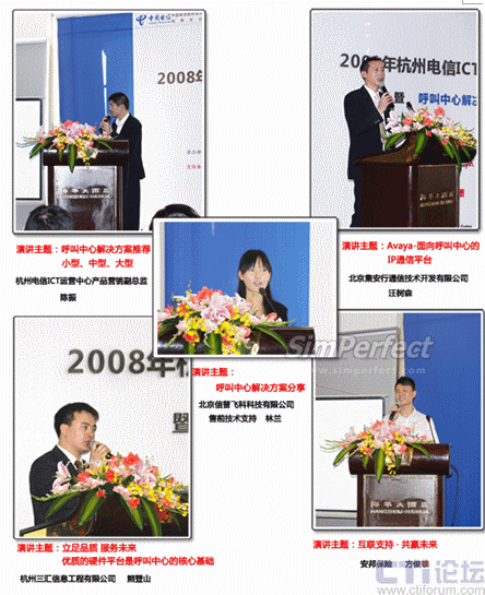 11月4日,北京信普飛科、上海羅盤、集安行、杭州三匯、杭州領(lǐng)先、思安華勝、七星藍圖、康達特等公司攜手 杭州電信 共同舉辦的2008杭州電信ICT運營中心技術(shù)交流會,暨呼叫中心解決方案推薦會在杭州海華大酒店如期舉行。
