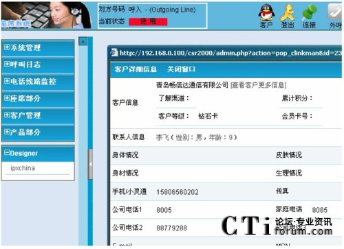 作為呼叫中心的核心功能,來電彈屏功能在客戶和服務代表之間建立了溝通的橋梁。當電話接入客服代表電話振鈴的同時,電腦屏幕會彈出客戶的相關資料。如果是新客戶,則彈出空白頁面,客服代表可以說歡迎的同時錄入客戶資料,以備客戶下次來電時查詢。當客戶在網上選購產品時,有問題可以隨時打電話溝通,來時的同時,座席電腦上彈出客戶已經填寫的資料,座席對客戶的資料一目了然,提高了工作效率。來電彈屏的頁面可以根據用記要求定制。