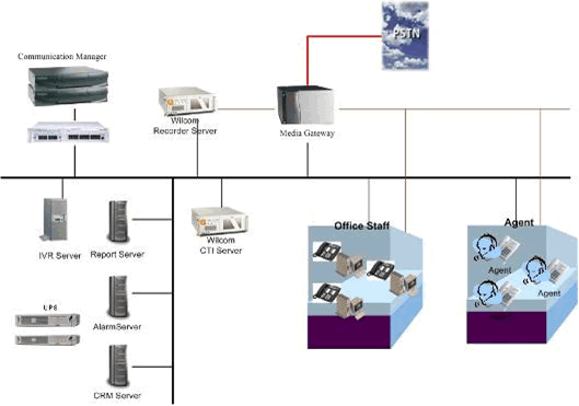 WILCOM CTI系統(tǒng)將CTI主流應(yīng)用帶進(jìn)了專業(yè)的呼叫中心。使得通過普通PC即可以完成自動(dòng)撥號(hào)、會(huì)議電話等電話功能 ,并且與數(shù)據(jù)存儲(chǔ)主機(jī)及其客戶機(jī)相配合,提供消息管理。座席代表能夠迅速地用電腦處理呼叫并且使用應(yīng)用程序進(jìn)行自動(dòng)撥號(hào)。系統(tǒng)還可以利用主叫信息以及呼叫提示位進(jìn)行實(shí)時(shí)的檢索和操作并將數(shù)據(jù)顯示給坐席電腦。系統(tǒng)還可以根據(jù)一定條件的計(jì)劃安排(如市場(chǎng)調(diào)查、客戶要求的回叫等),進(jìn)行呼出管理,完成預(yù)覽或預(yù)測(cè)呼出,以提高服務(wù)的效率和水平。 高可靠的CTI雙機(jī)熱備方案
