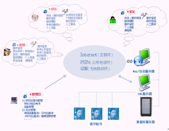 為配合教育部"校校通"工程的順利實(shí)施,深圳市潤(rùn)聲信息系統(tǒng)有限公司推出的"家校直通車"系統(tǒng)(SchoolToHome),在家長(zhǎng)和老師之間搭建起一座信息化橋梁。該系統(tǒng)經(jīng)過兩年多,以及多個(gè)地市的實(shí)施,得到了廣大老師、學(xué)生及家長(zhǎng)的好評(píng)。
