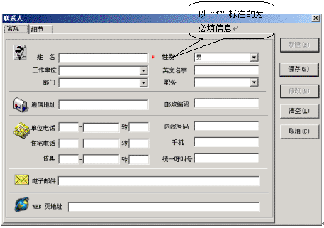在地址簿中按鼠標右鍵,在彈出的菜單中選擇“新鍵地址簿記錄”選項,就會彈出新建聯(lián)系人對話框,在這里添入相應的內容,您的一個新用戶通訊錄就建立完畢了。