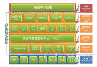 - 應(yīng)用接口層,上層應(yīng)用必須通過(guò)應(yīng)用接口調(diào)用各種媒體服務(wù),確保了應(yīng)用對(duì)下層平臺(tái)的合法調(diào)用,從而保證整個(gè)平臺(tái)的穩(wěn)定性。QuickVoice提供了豐富的簡(jiǎn)單易用的應(yīng)用接口,使用戶可以最大限度發(fā)揮平臺(tái)功能,構(gòu)筑任意復(fù)雜的呼叫中心應(yīng)用