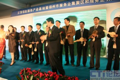 4月21日,江蘇信息服務(wù)產(chǎn)業(yè)基地暨揚(yáng)州市服務(wù)業(yè)集聚區(qū)和服務(wù)業(yè)項(xiàng)目推介洽談會在江蘇信息服務(wù)產(chǎn)業(yè)基地(揚(yáng)州)隆重召開,省信息產(chǎn)業(yè)廳副廳長龔懷進(jìn)、揚(yáng)州市委常委、常務(wù)副市長張京霞為省信息安全技術(shù)中心揭牌,中國網(wǎng)通集團(tuán)公司總工程師滕勇,神州數(shù)碼高級副總裁陳勇,上海萬得信息股份董事長陸風(fēng)等數(shù)十位集團(tuán)公司老總現(xiàn)場祝賀,同時(shí)IBM、AVAYA、優(yōu)勝資訊、神州數(shù)碼等60多家企業(yè)現(xiàn)場簽定了投資合作協(xié)議,而華潤通信、中國電信、酒店無憂、漢世紀(jì)等10家企業(yè)則從廣陵區(qū)委書記孔令俊手中接過了入駐金鑰匙,成為首批入駐江蘇信息服務(wù)產(chǎn)業(yè)基地的企業(yè),至此江蘇信息服務(wù)產(chǎn)業(yè)基地迎來首發(fā)項(xiàng)目招商的“開門紅”,江蘇信息服務(wù)產(chǎn)業(yè)基地也因此被業(yè)界冠以中國首家專業(yè)定位信息呼叫和數(shù)據(jù)處理產(chǎn)業(yè)的“中國聲谷”的美譽(yù)。 “江蘇信息服務(wù)產(chǎn)業(yè)基地(揚(yáng)州)”位于廣陵新城內(nèi),為省信息產(chǎn)業(yè)廳與揚(yáng)州市政府聯(lián)手打造的中國首家專業(yè)定位于呼叫信息和數(shù)據(jù)處理產(chǎn)業(yè)的省級信息服務(wù)業(yè)基地,占地2.52平方公里,總投資50億元,處于揚(yáng)州ECBD核心區(qū)域,交通便捷,區(qū)位優(yōu)勢獨(dú)特,生態(tài)環(huán)境優(yōu)美;匕凑铡爱a(chǎn)業(yè)社區(qū)”的標(biāo)準(zhǔn)和“商務(wù)公園”的理念規(guī)劃建設(shè),重點(diǎn)發(fā)展信息服務(wù)產(chǎn)業(yè)及具有揚(yáng)州特色的城市信息化應(yīng)用軟件和嵌入式軟件產(chǎn)業(yè),立足長三角、面向全國、服務(wù)世界,逐步發(fā)展成為全國乃至世界呼叫中心產(chǎn)業(yè)最佳實(shí)踐基地、全國生產(chǎn)性服務(wù)業(yè)的標(biāo)桿示范基地及呼叫中心人才培訓(xùn)與派遣基地。