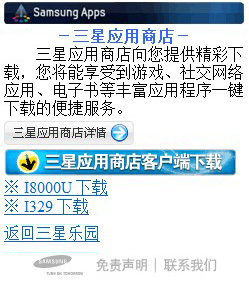 2月1日消息 近日,三星應用商店(SamsungApps)面向中國消費者試運營。期間,三星應用商店(SamsungApps)將免費提供適用于三星I8000U和i329的多種應用程序,包括:游戲、社交網(wǎng)絡應用、電子書等豐富類型。